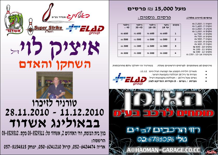 ראשי / תחרויות / טורנירי מועדונים / טורניר איציק לוי 2010 Feature Story תחרויות / טורנירי מועדונים2026-04-13 טורניר איציק לוי 2010טורנירי מועדונים תקנוןפרסים Related עוד מאותו מדור 2026-04-13 טורניר אורן הרצליה 2026 היכנסו לפרטים נוספים2026-04-13 טורניר אורן הרצליה 2025 לחצו כאן לצפייה בתוצאות באתר התחרות2026-04-13 טורניר טל ה-1 בשנת 2024 2026-04-13 טורניר אורן הרצליה 2024 ברכות לליאב יהנה מקרייזיבול עם זכייתו בטורניר.